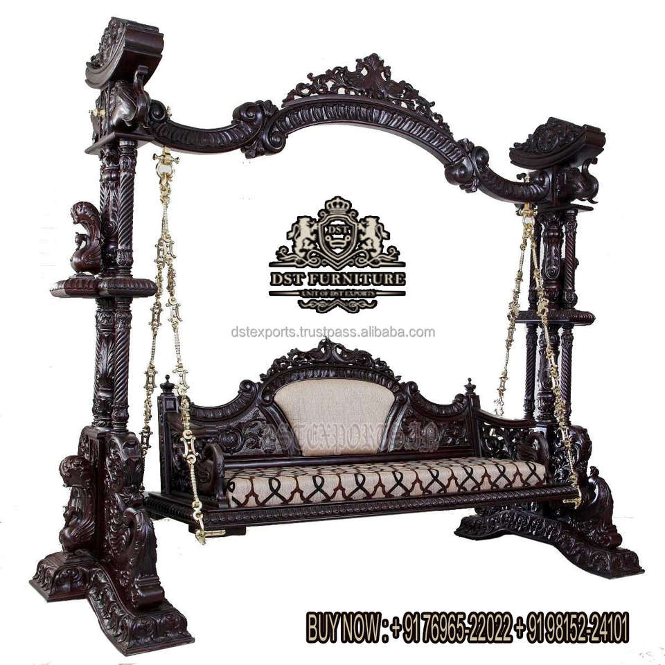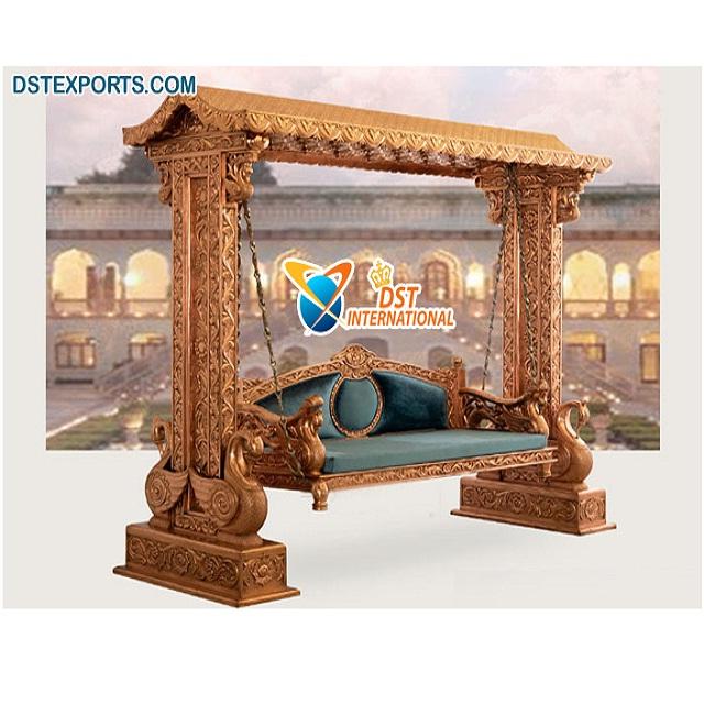 Indian Carved Wooden Peacock Swing Jhoola Royal Antique Design Wooden Swing Jhula Traditional Antique Polished Swing Manufacture