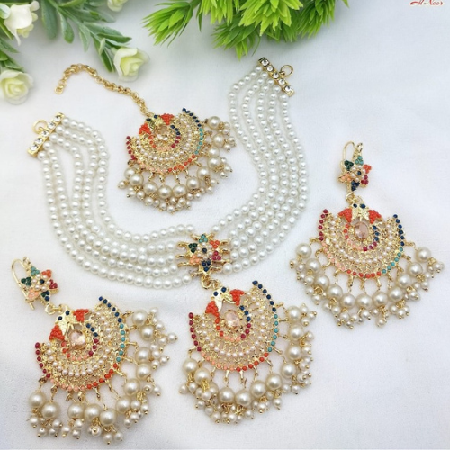 Indian Choker Necklace Earrings Maang Tikka Piece Jewelry Bridesmaid Indian Style Jewellery Bridal Wedding Fashion Jewelry Sets
