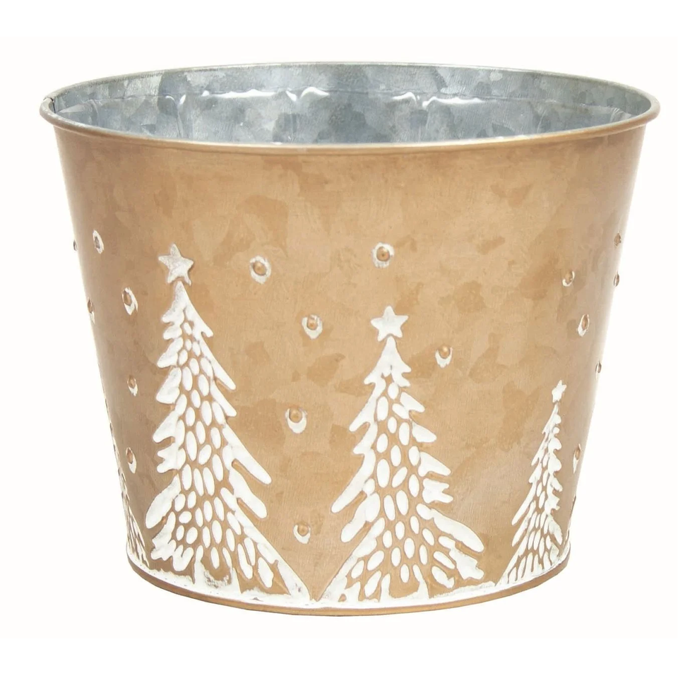 Indian Christmas Tree Embossed Design Galvanized Tin Metal Farmhouse Planter Modern Metal Planters Garden Supplies Iron Planter