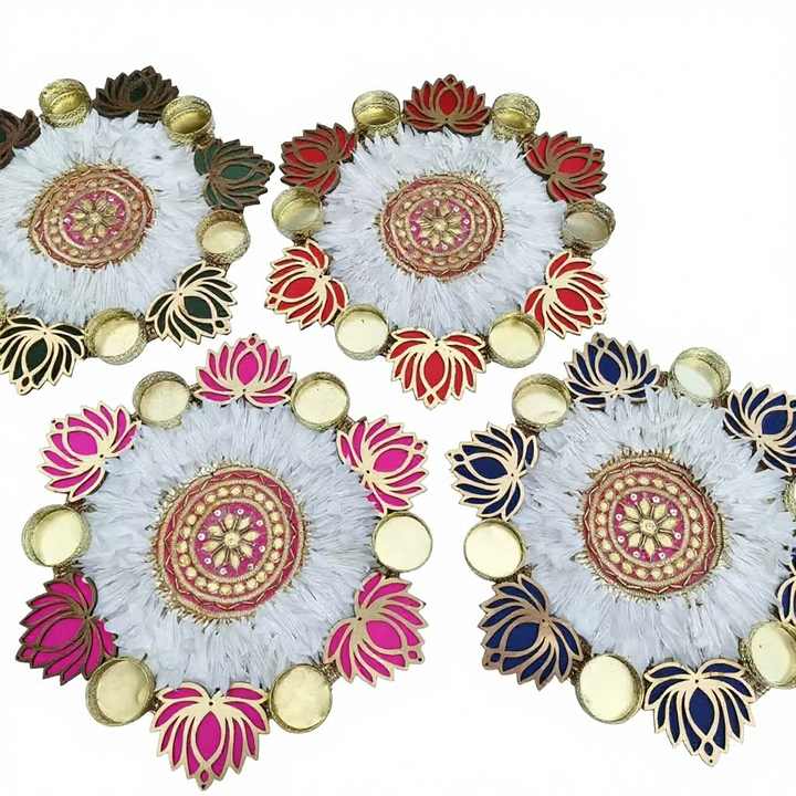 Indian Colorful Lotus Rangoli Set with Metal Candle Holder Festive Home Decor Wedding Gifts Housewarming Favors Table Decoration