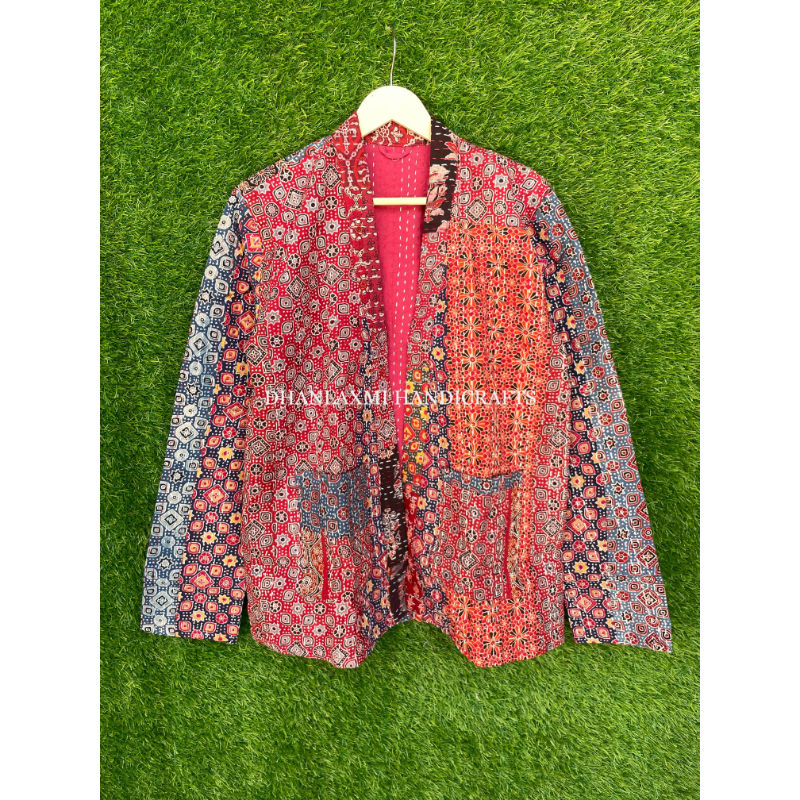 Indian Cotton Quilted Kantha Jacket Winter Coat With Ajrakh Patchwork Hippie Boho Style Woman's Bohemian Leather Jacket Outfit