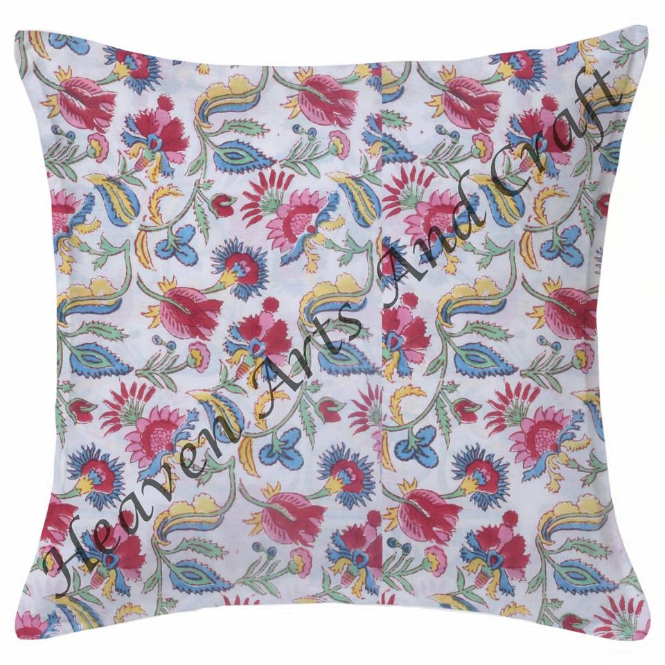 Indian Cotton Cushion Cover Indian Decorative Cotton Fabric Sofa Cushion Cover Hand Block Print With Ethnic Design