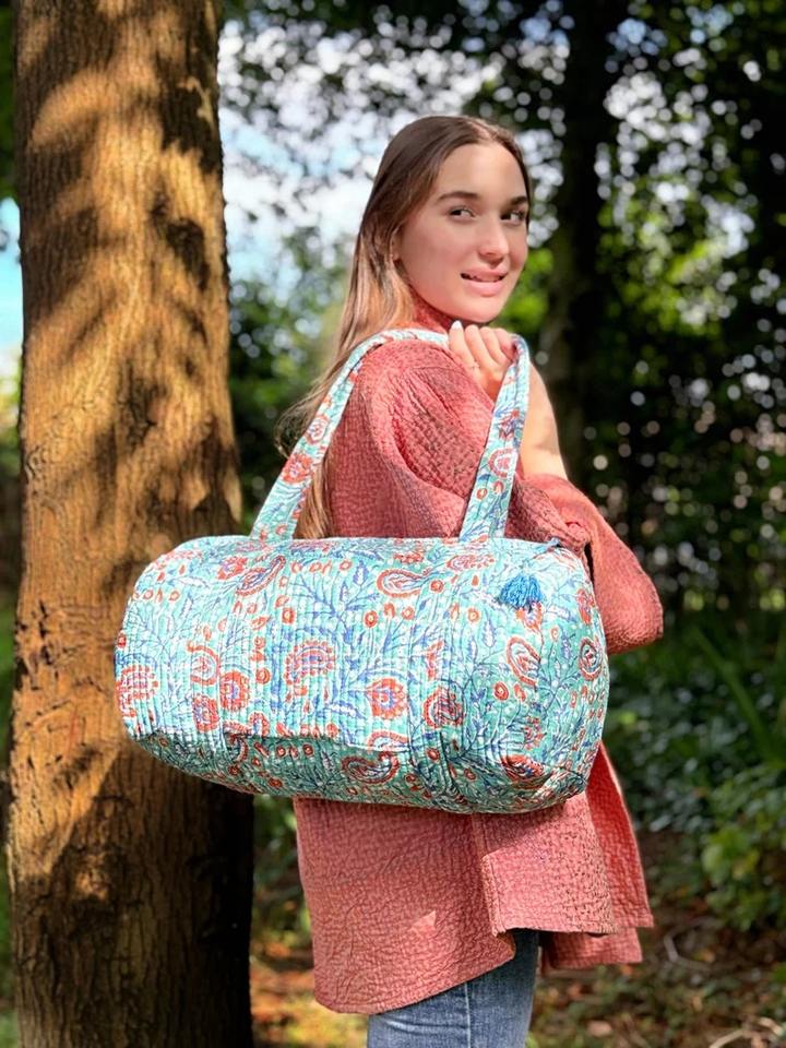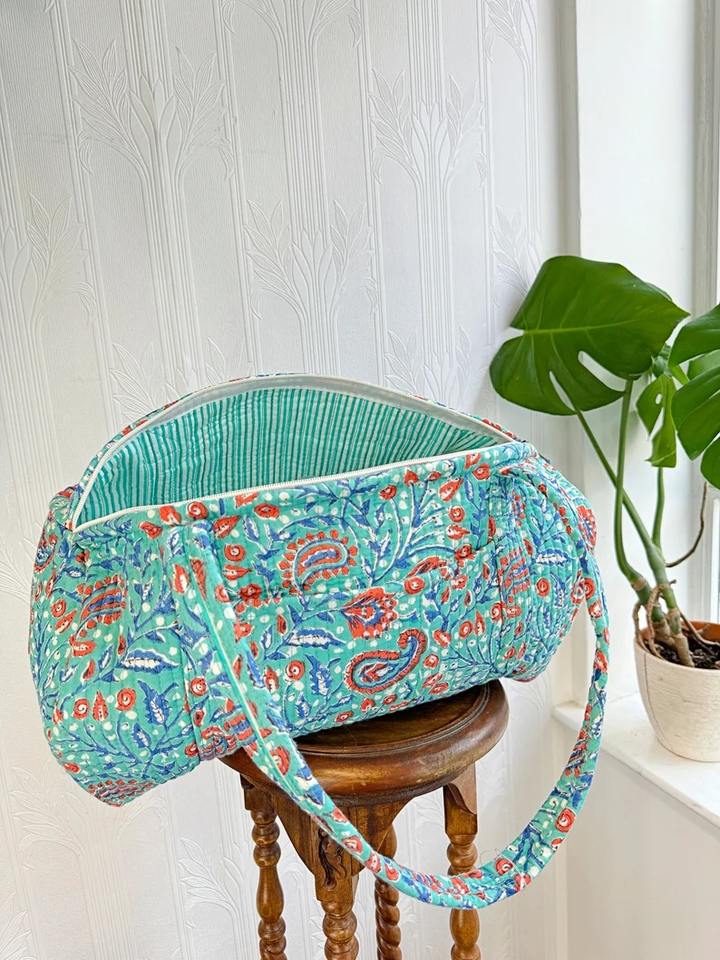 Indian Cotton Duffle Tote Bag Women Quilted Floral Bohemian Block Print Perfect Summer Winter Beach Travel Handmade Vintage Bag
