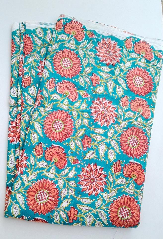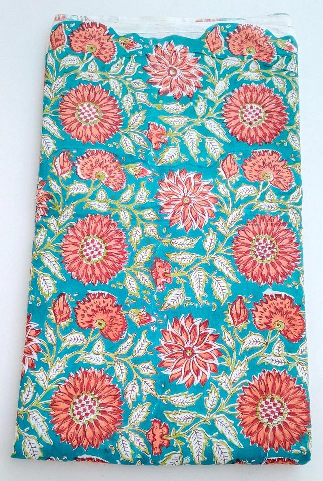 Indian Cotton Fabric Hand Block Print Floral Design for Shirts and Bags Sewing Material by the Yard