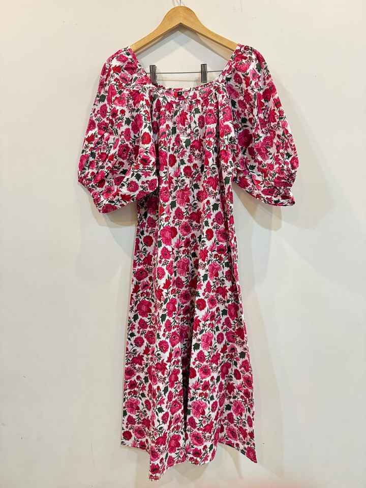 Indian Cotton Floral Block Printed Maxi Dress Bohemian Long Summer Dress For Women | Traditional Casual Wear
