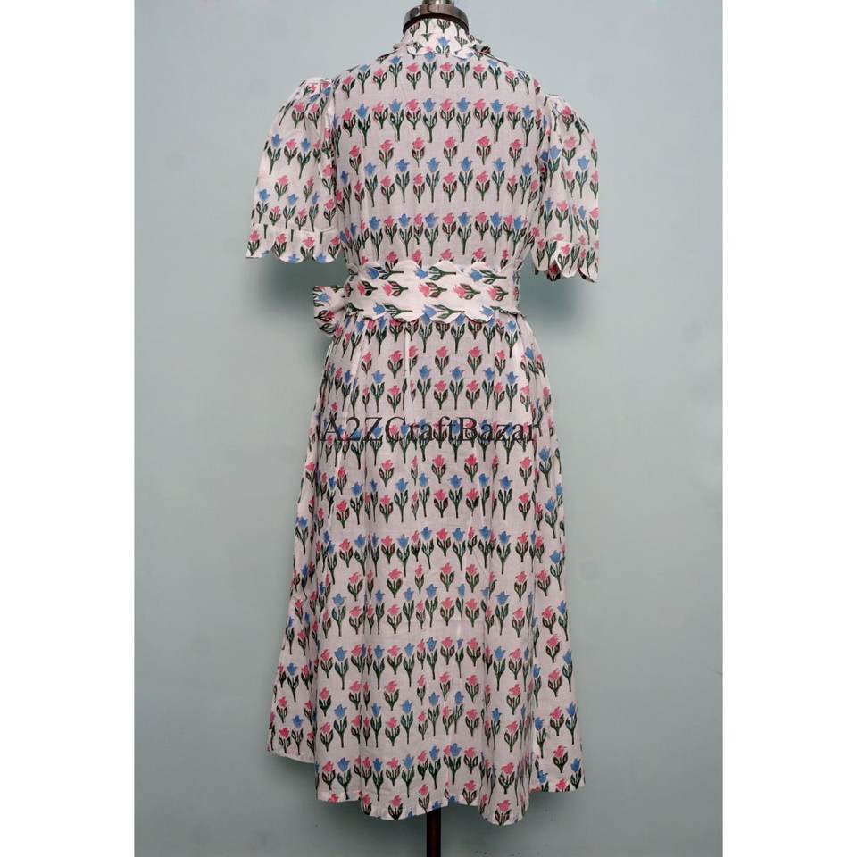 Indian Cotton Hand Block Print Sweet Solid Women's Knee-Length A-Line V-Neck Party Wear Short Sleeves Summer Beach Vacations