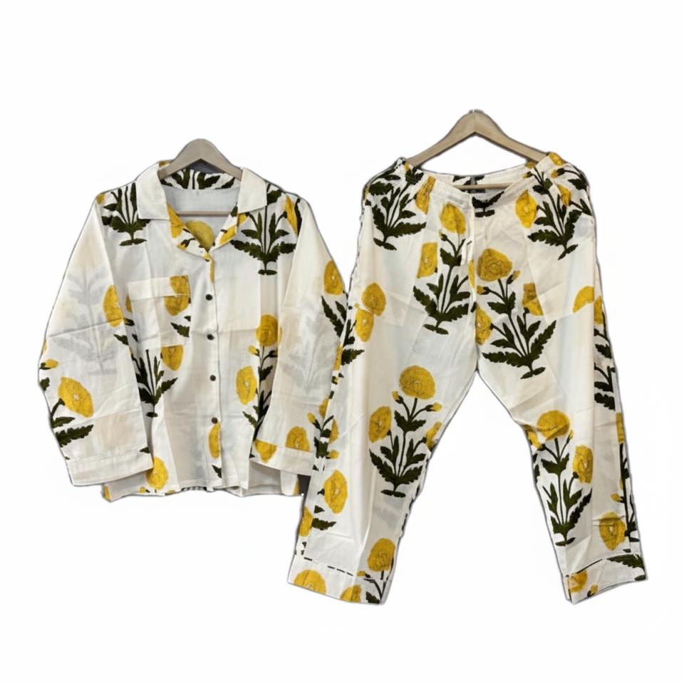 Indian Cotton Night Wear Pj Set Dress Soft Cotton Night Suit Hand Block Printed Pajama Set Women Sleepwear Nightwear Dress