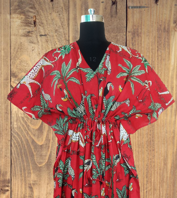 Indian Cotton Kaftan for Women Long Printed Summer Maxi Gown Party Wear Dress Plus Size Natural Waistline