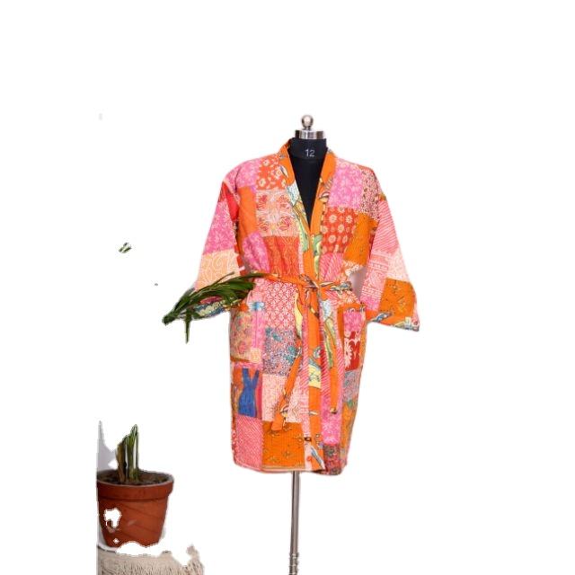 Indian Cotton Sleepwear Kimono, Beach Wear Cotton Kimono, Gift for Her for to Be Moms Patchwork Printed Reversible Kimono