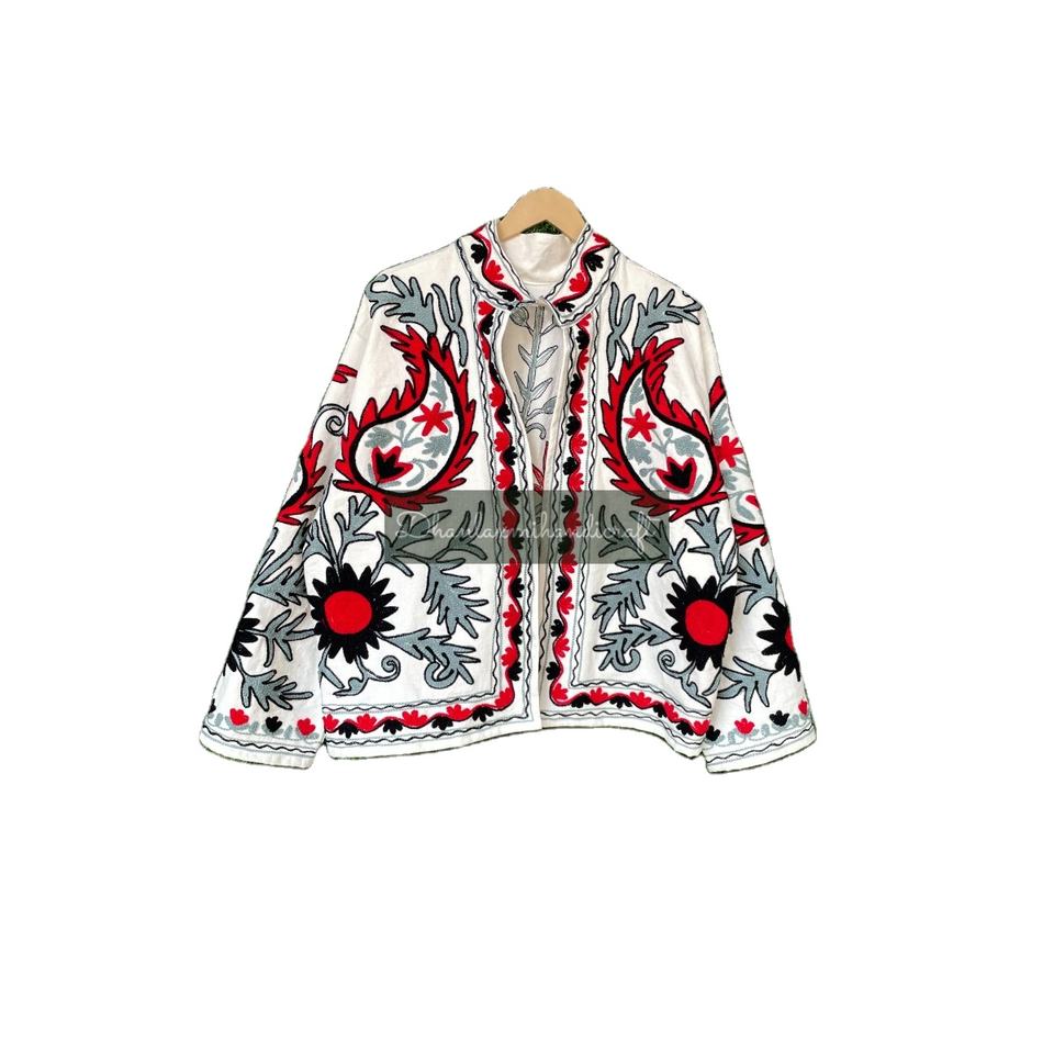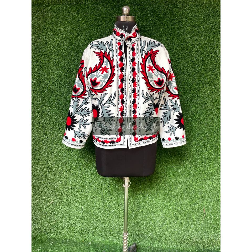 Indian Cotton Winter Unisex Jacket Coat Hand Floral Embroidery Jacket Handmade Suzani Jacket Boho Hippie Style Overcoat