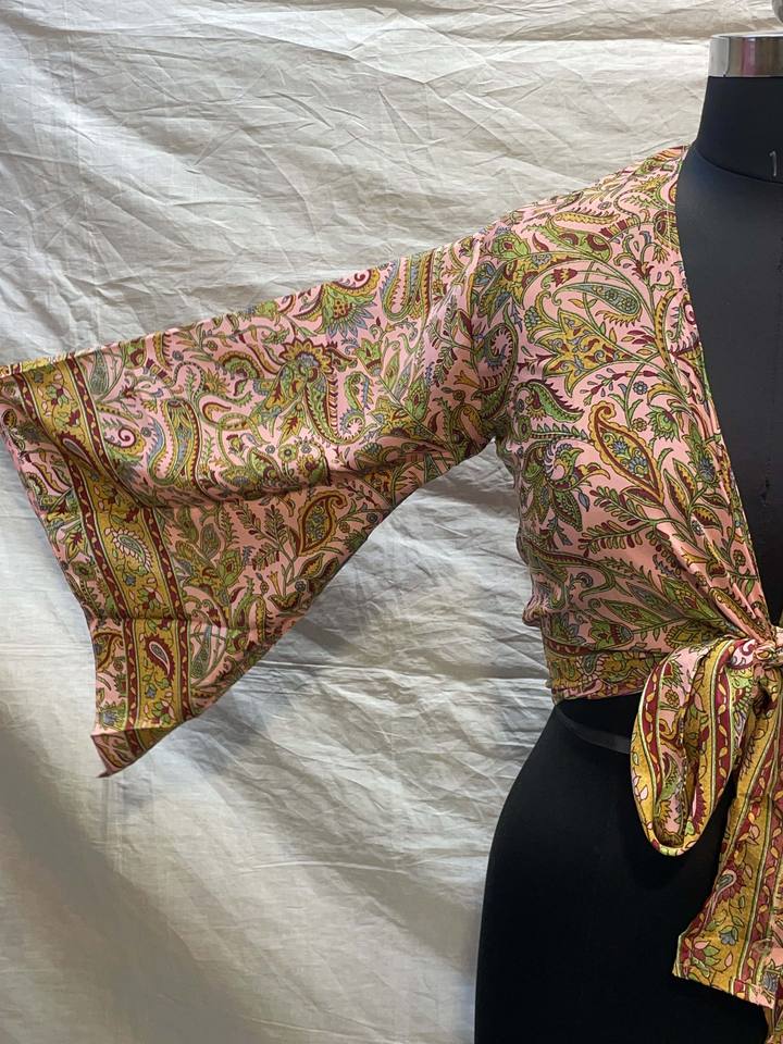 Indian Crop Top, Women's Crop Top, Silk Bell Sleeves Crop Top, Wrap, Sari Blouse, Floral Top Crop, Girls Top Crop