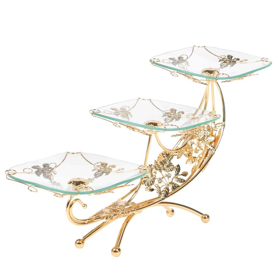 Indian Crystal Metal 3-Tier Eco-Friendly Durable Dishwasher Safe Serving Tray with Storage for Kitchen Party Hotel Use
