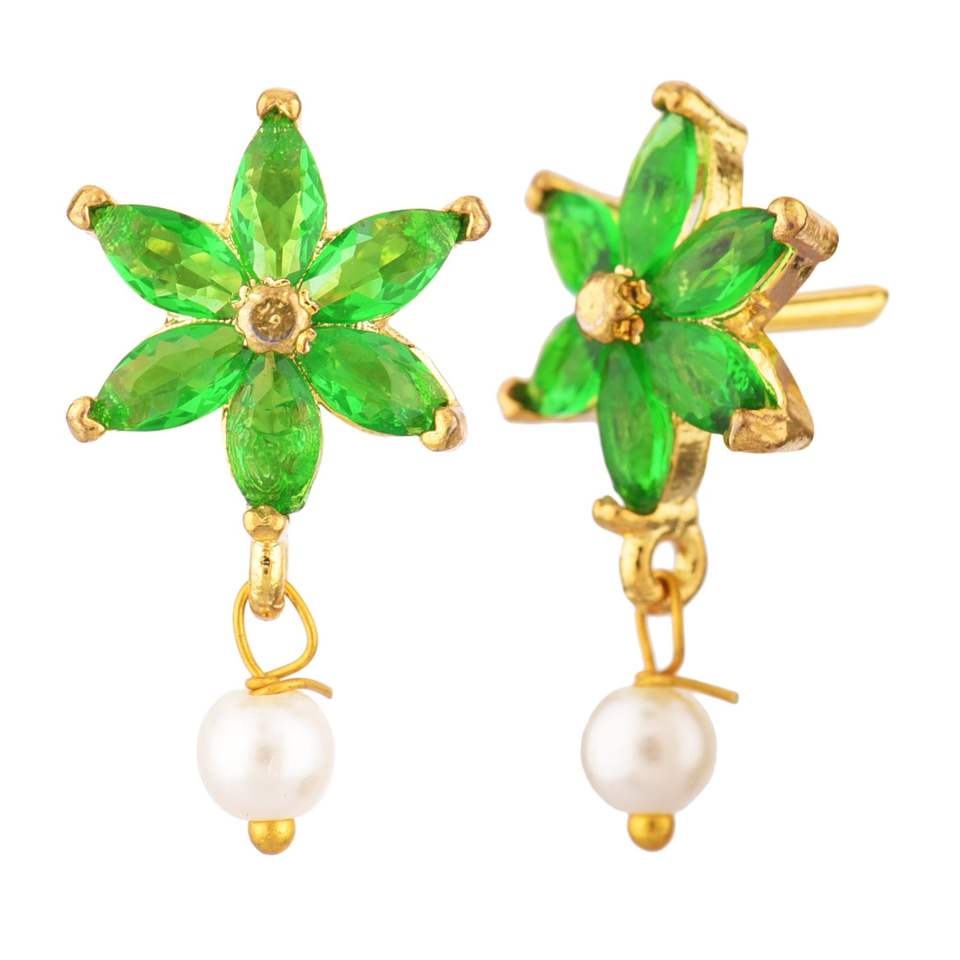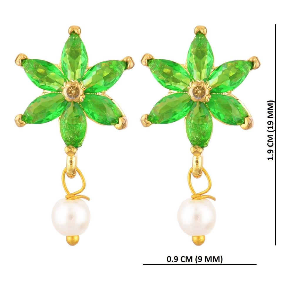 Indian Cubic Zirconia CZ Floral Pearl Drop Stud Earrings Pierced Jewelry for Women