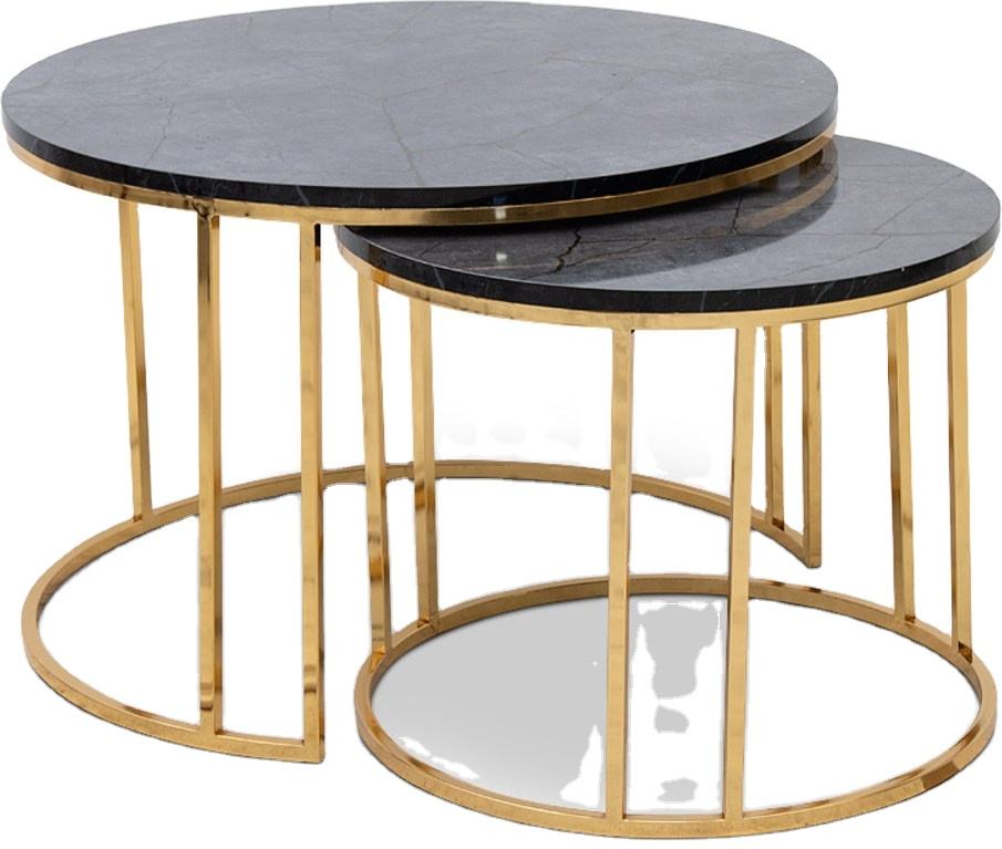 Indian Design Stainless Steel Gold Polished Black Marble Stone Top Coffee Tables Set of 2 Pc for Bedside Customized for Bedroom