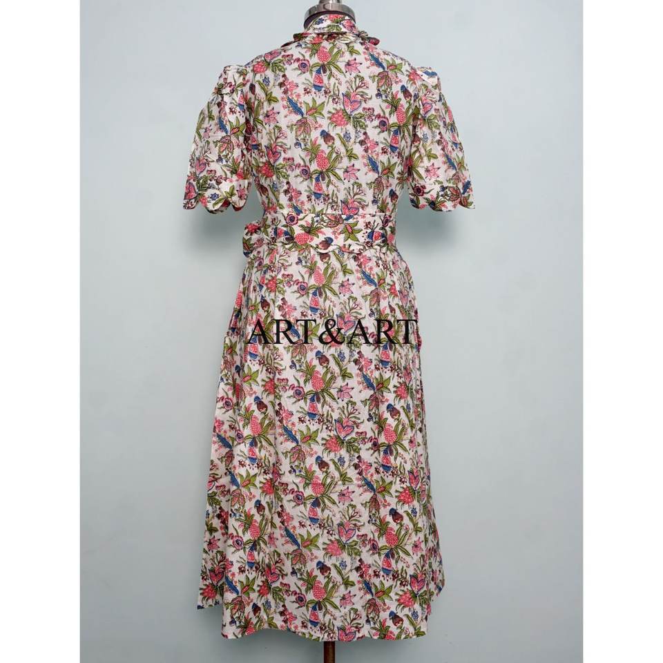 Indian Designer Kangura Sweet Casual Knitted V-neck Midi Dresses Women Eco-Friendly Washable Floral Print Natural Waist Button
