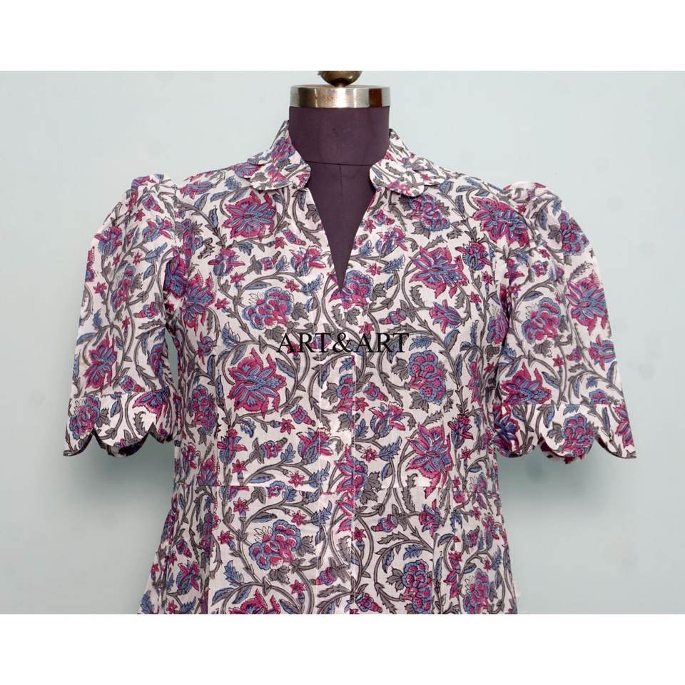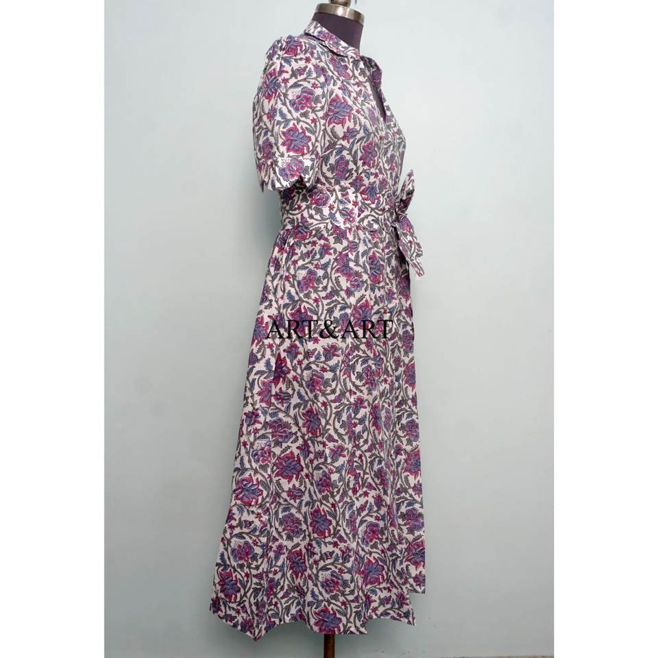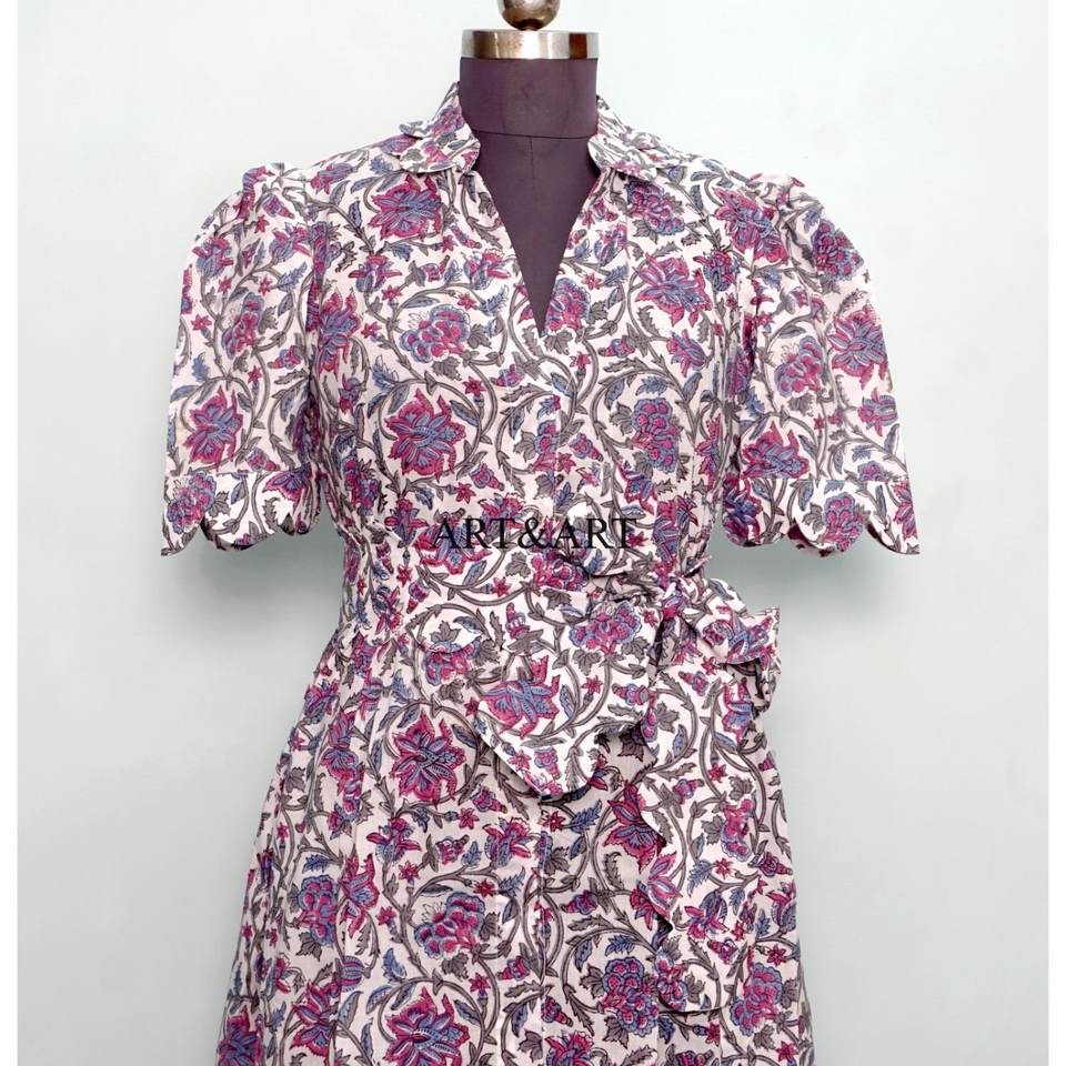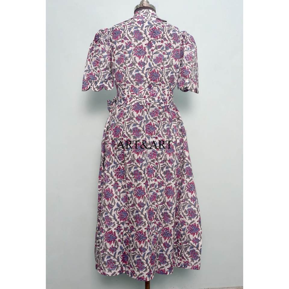 Indian Designer Kangura Sweet Casual Knitted V-neck Midi Dresses Women Eco-Friendly Washable Floral Print Button Natural
