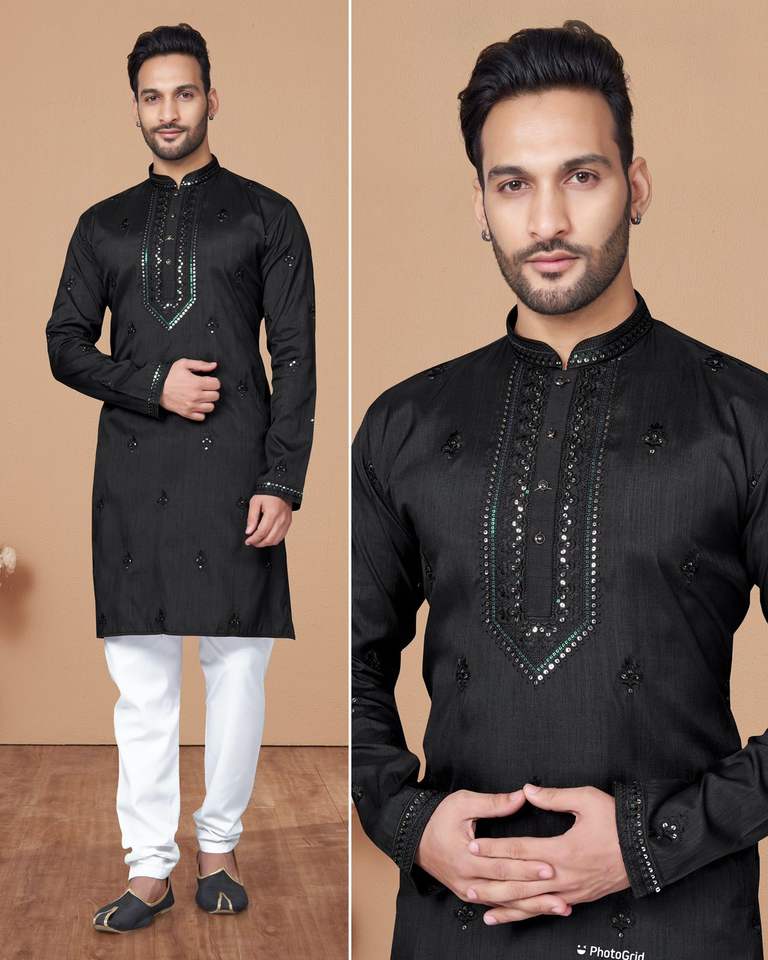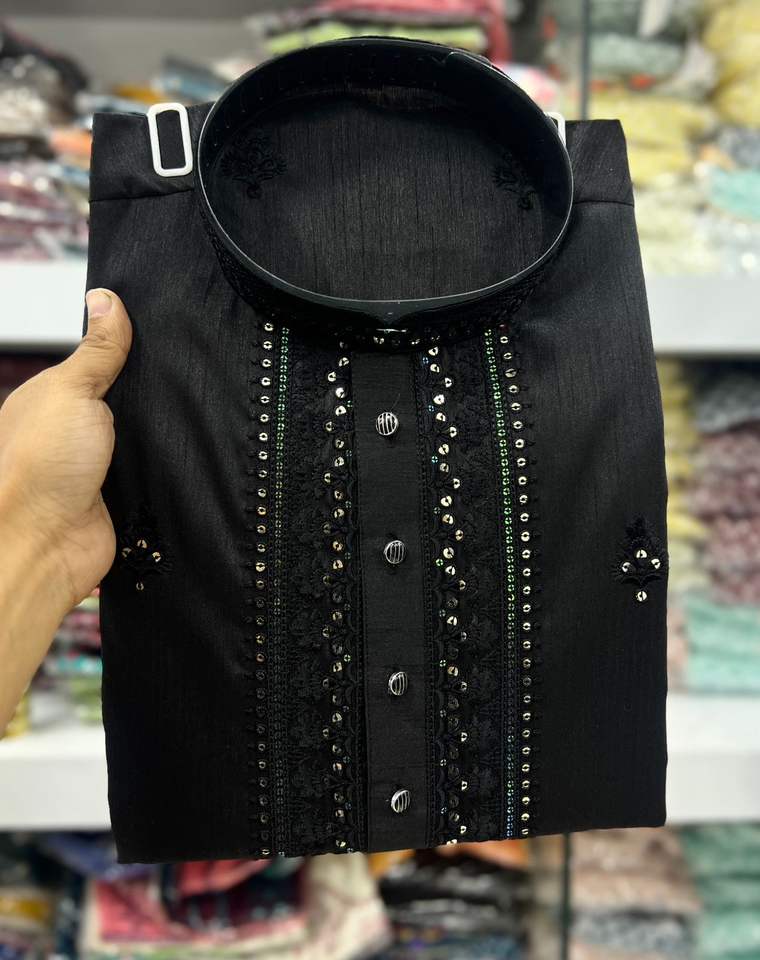 Indian Designer Men's Premium Quality Heavy Super Silk With heavy Embroidery Work Raymond Cotton Kurta Exclusive Party Wear