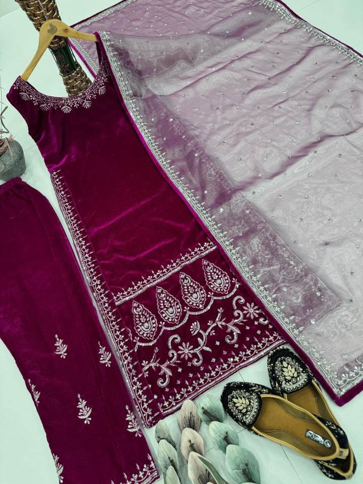 Product Name:Viscose Velvet Sequence Work Top Pant And Dupatta