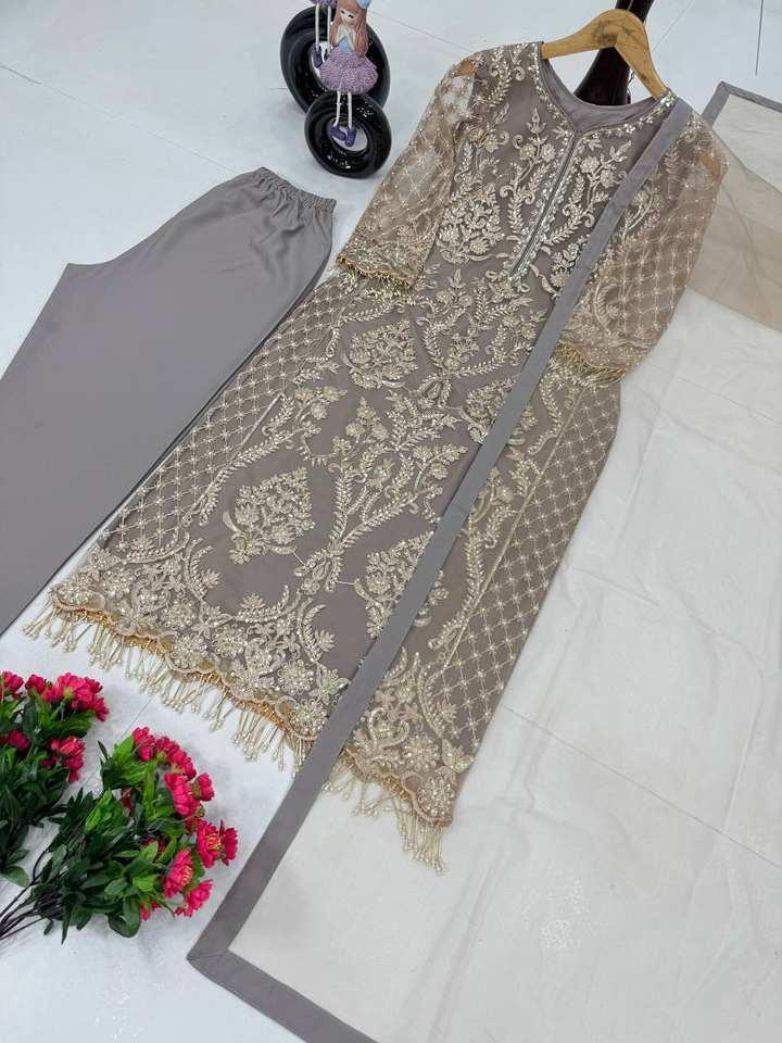 Indian Designer Women's Bollywood Special Collection Heavy Diamond Work Embroidery Sequence Heavy Soft Net Fabric for Party