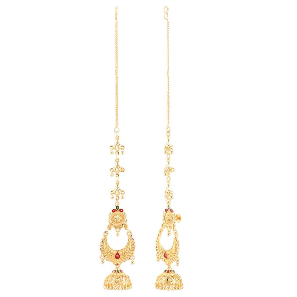 Design:Antique designer dangling ear chain earrings with jhumki tassels