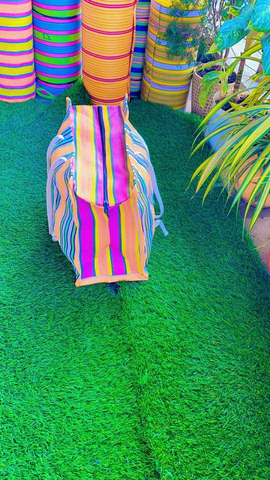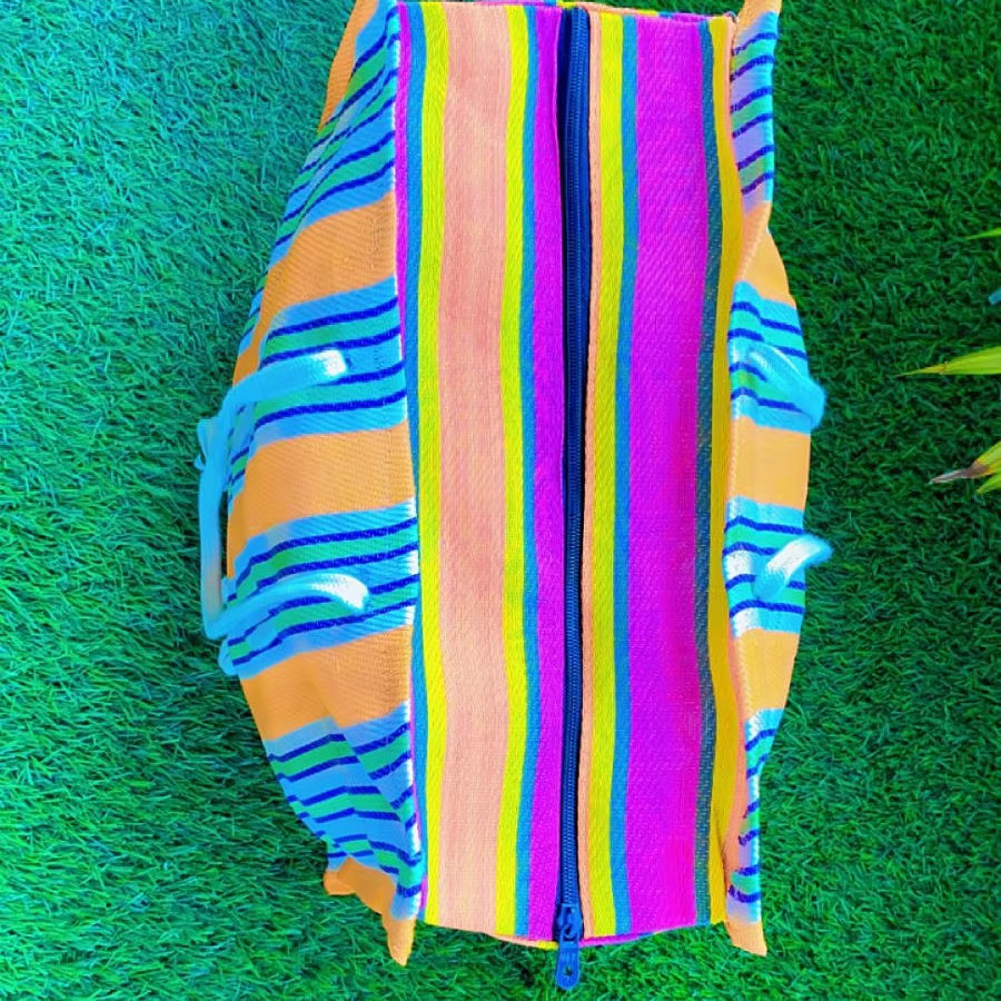 Indian Eco-Friendly Multicolor Woven Recycled Nylon Striped Pouches Market Shopping Bags Manufactured in India PP Material