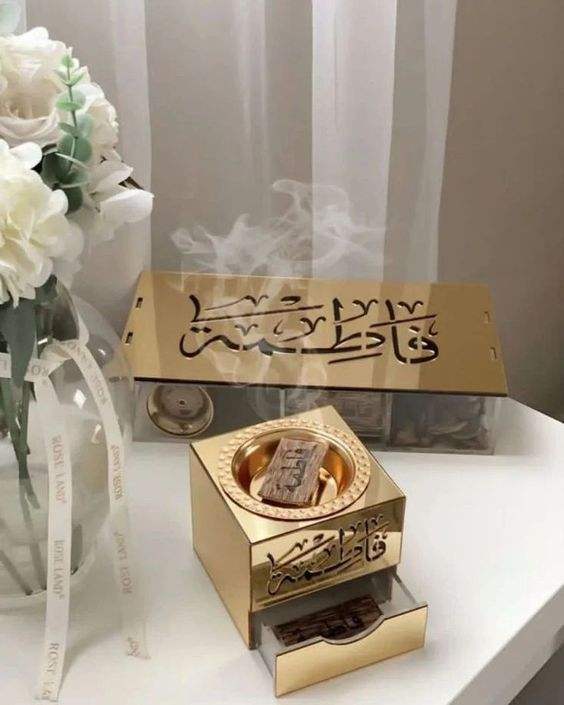 Indian Embossed Design Wood Gold Color Eco-Friendly 100% Natural Pine Candle & Bakhoor Incense Burner for Home Restaurants Decor