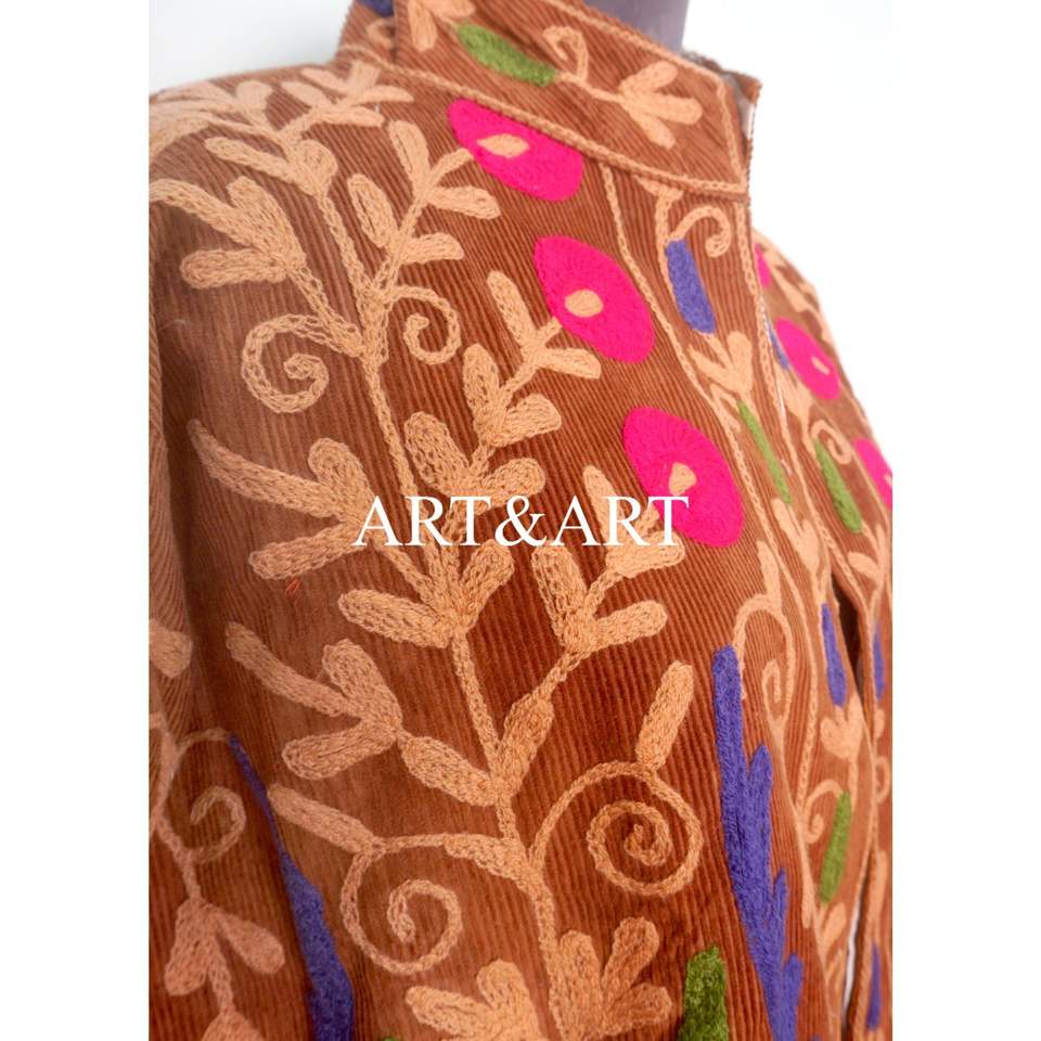 Indian Embroidered Cotrise Quilted Jacket for Women Summer Boho Style Full Sleeves Mandarin Collar Breathable Eco-Friendly