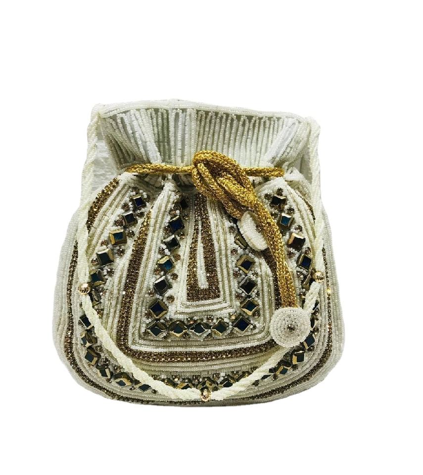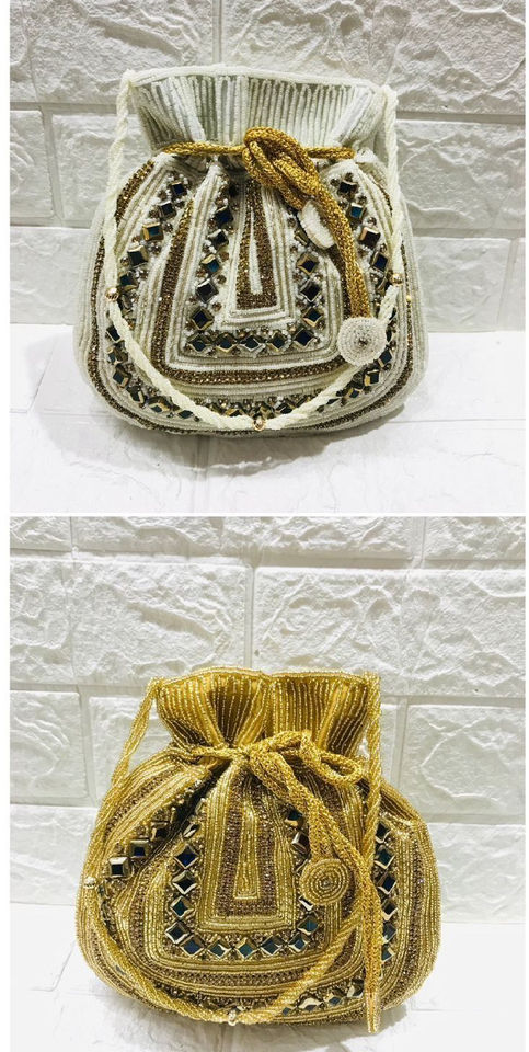 Indian Ethnic Designer Handmade Satin Evening Bag Rhinestone Beadwork Dori Strap 1-1.9L Capacity Fashionable Potli for Women for