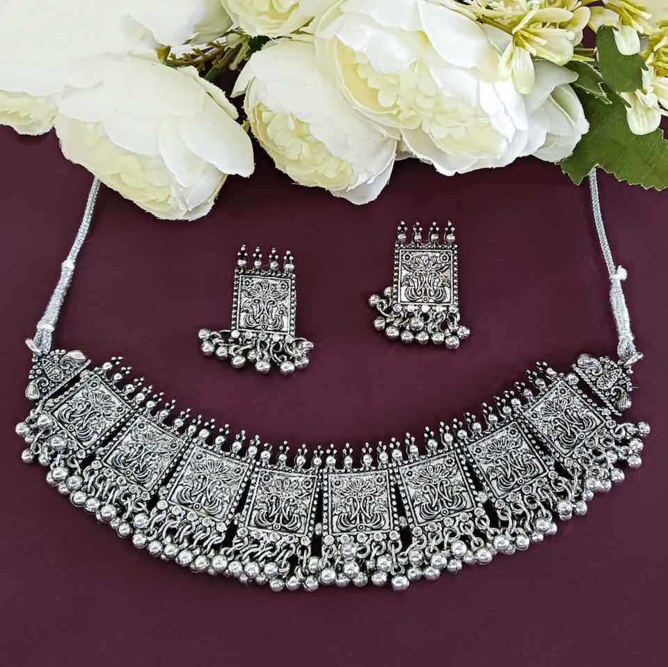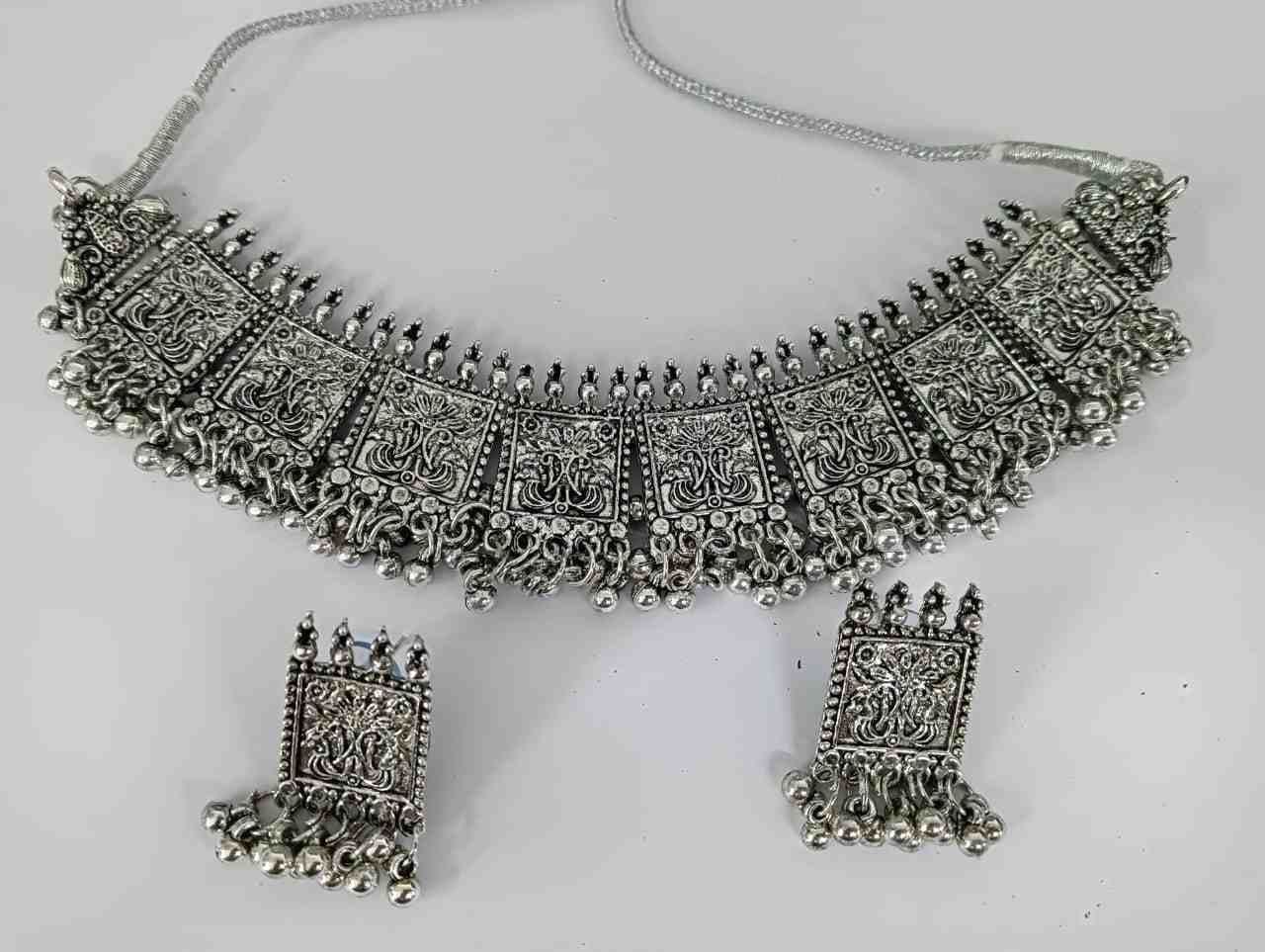Indian Ethnic Jewelry Set for Women Antique Oxidized Vintage Jewelry Set Boho Choker Necklace Earrings Set Fashion Jewelry Set
