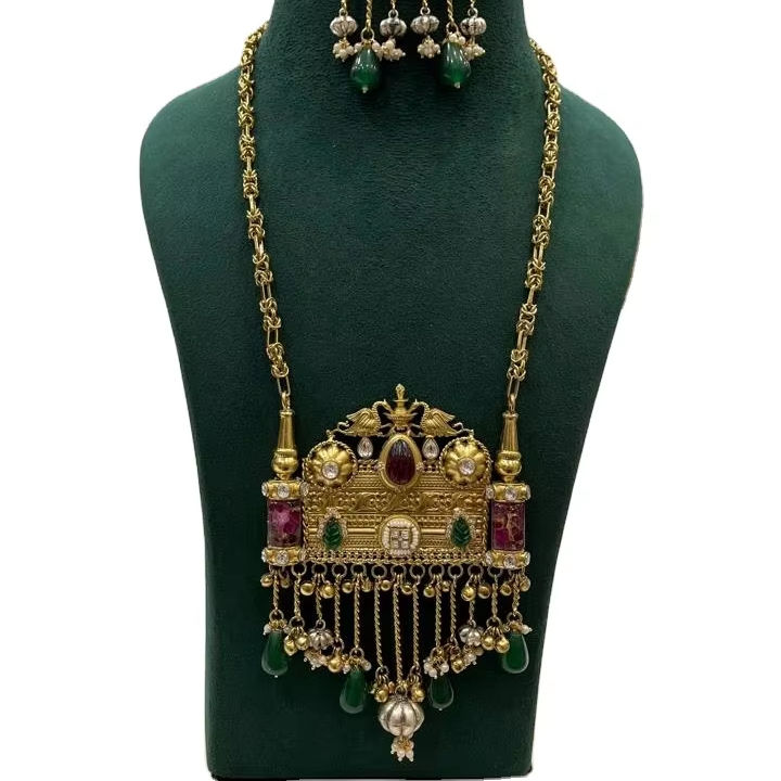 Indian Ethnic Luxury Kundan Style Necklace Set Handcrafted Gold Plated Imitation Bridal Jewellery Made Brass Link for Parties
