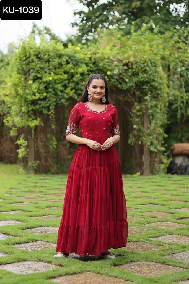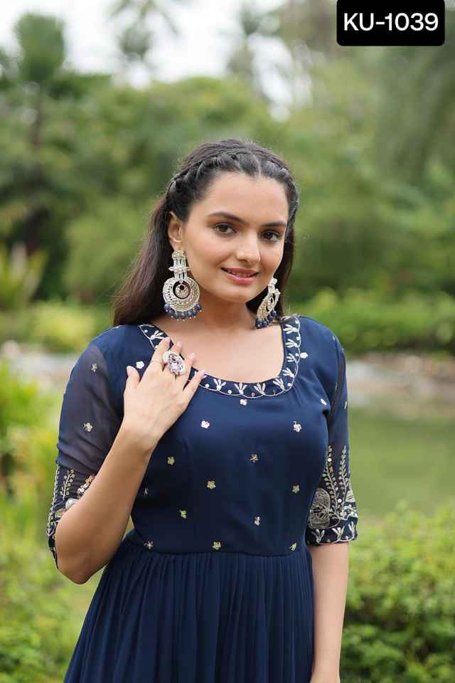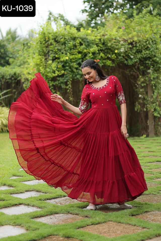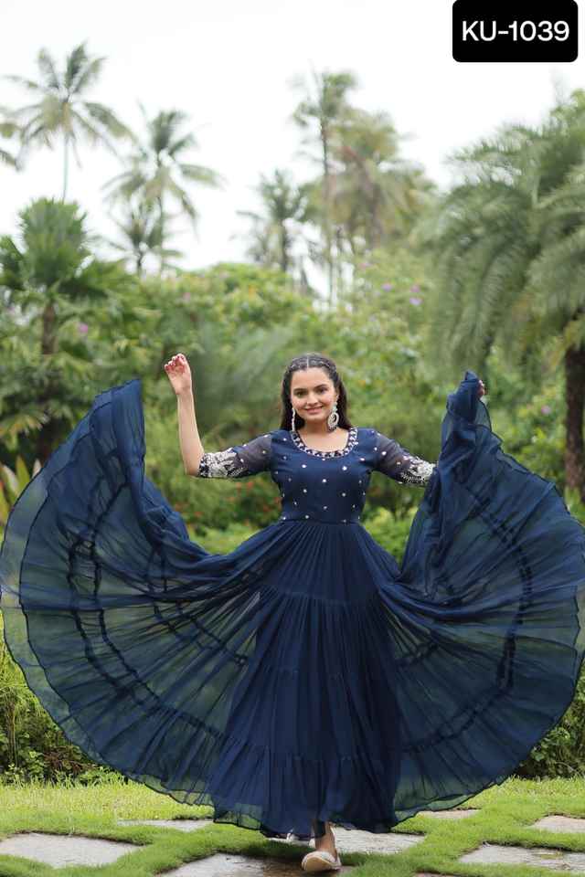 Indian Ethnic Wear Faux Blooming with Embroidery Zari Sequins Work Anarkali Readymade Gowns with Plus Size Available for Women
