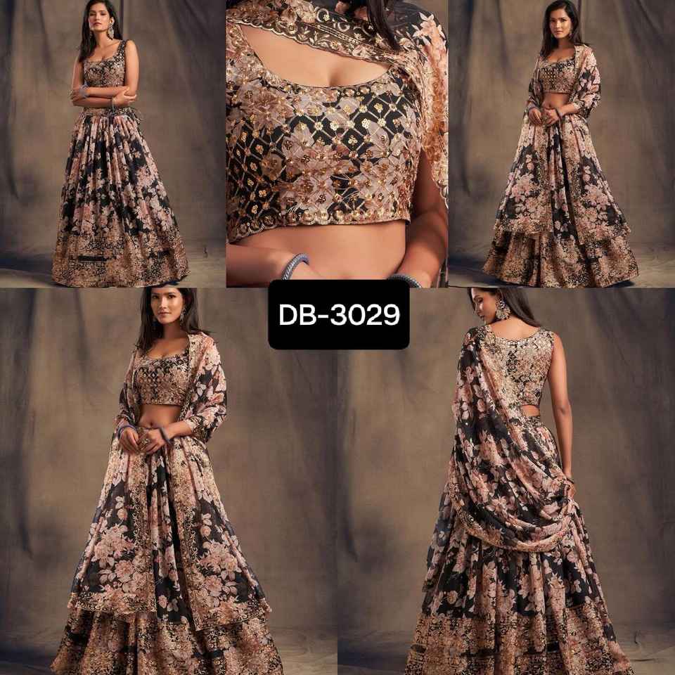 Indian Ethnic Wear Georgette Pink Color Lehenga Choli With Dupatta With Heavy Digital Print Sequence Embroidery Work Lengha