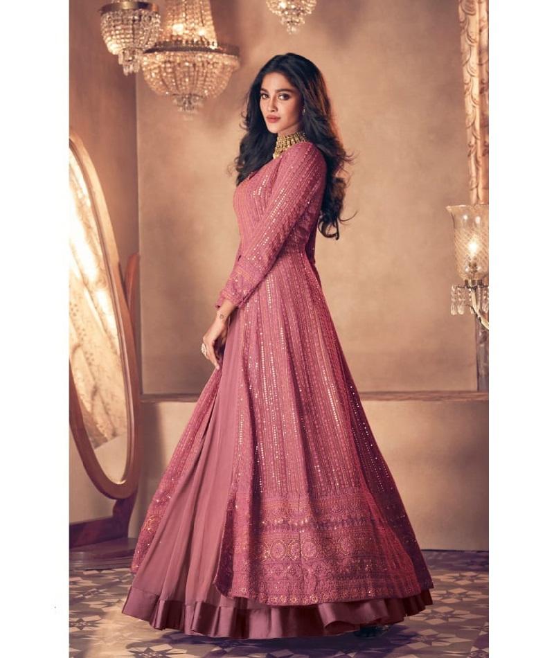 Indian Ethnic Wear Georgette With Heavy Embroidery Work Anarkali Long Wedding Wear Gowns With Nazamin Dupatta for Women