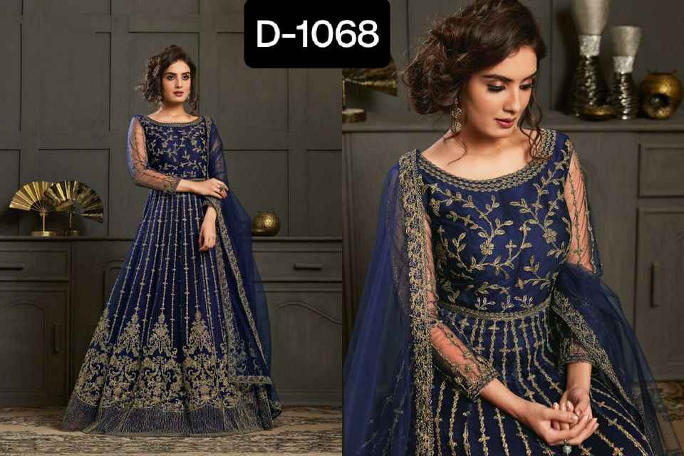 Indian Ethnic Wear Heavy Butterfly Net with Embroidery and Cording Work Wedding Wear Anarkali Gowns with Embroidery Work Dupatta