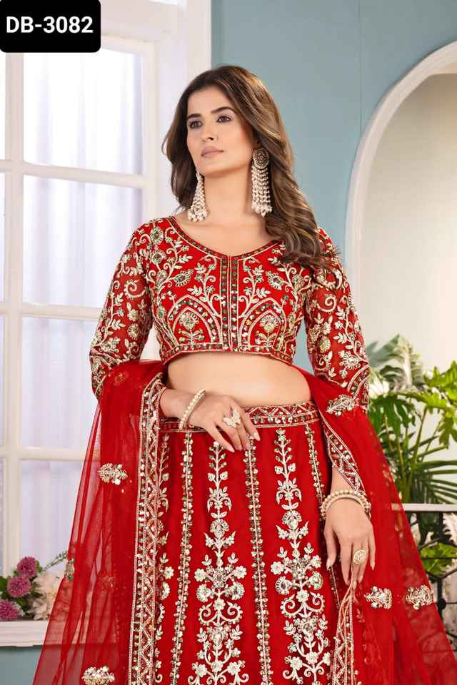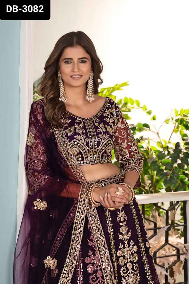 Indian Ethnic Wear Net Material Heavy Embroidery Sequence Codding Desihn Work Lehenga Choli with Dupatta Set for Women Lehenga