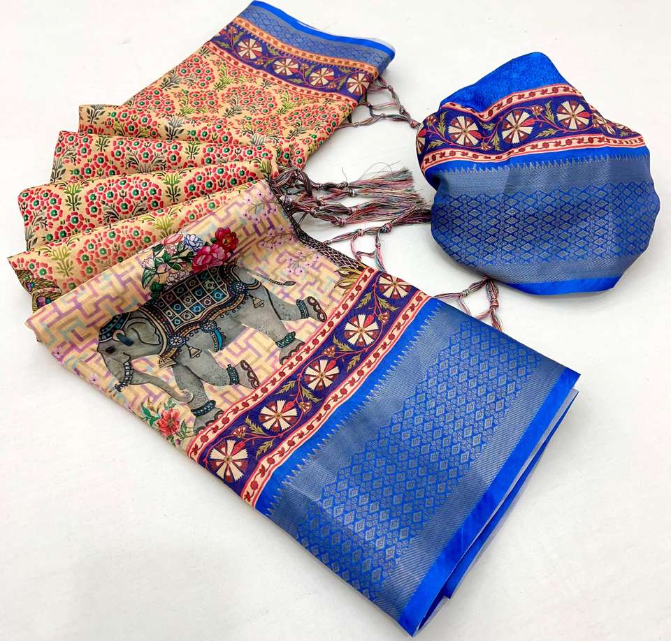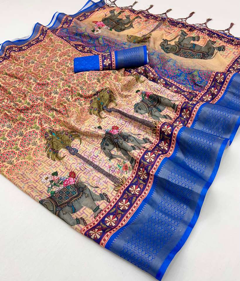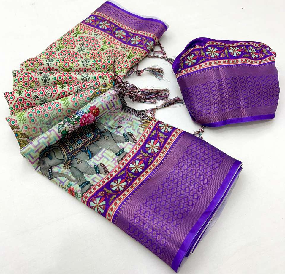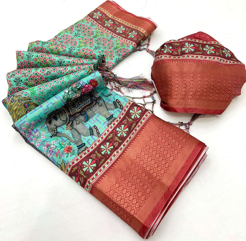 Work:jacquard with Digital printed Pallu with Contrast matching border