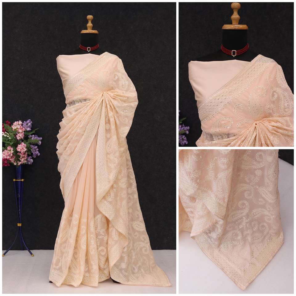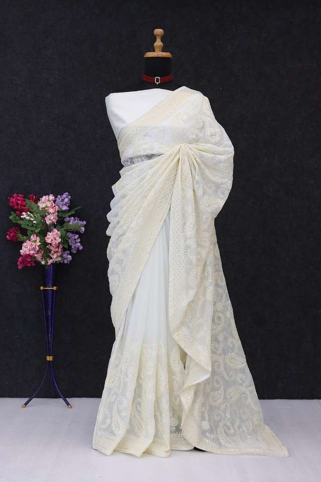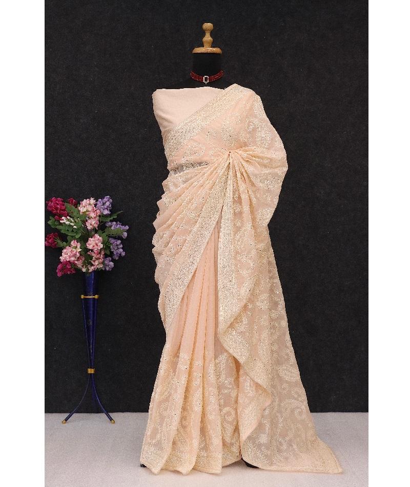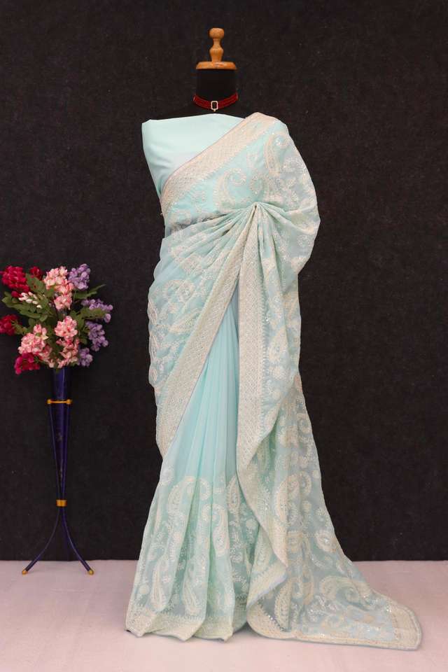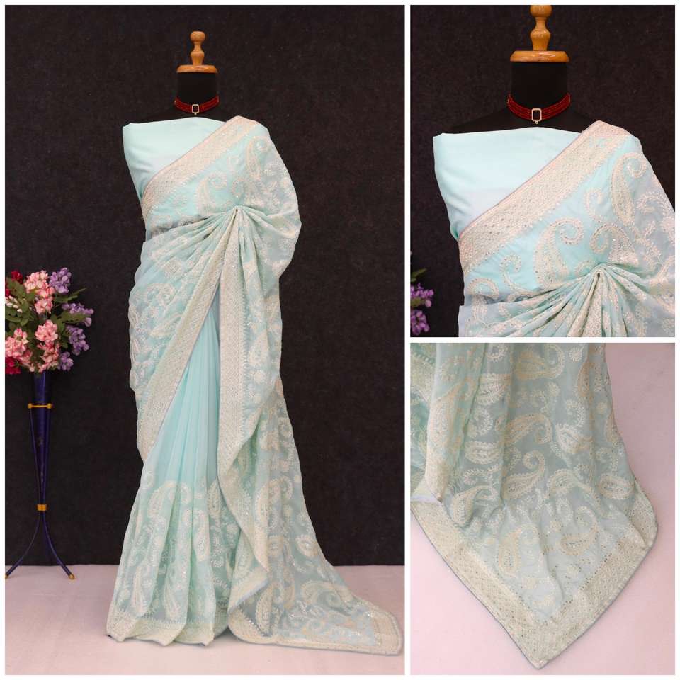 Indian Ethnic Wear Tabby Organza Silk with Sequence Multi Embroidery Work Piping Border Saree with Diamond Satin Silk Blouse