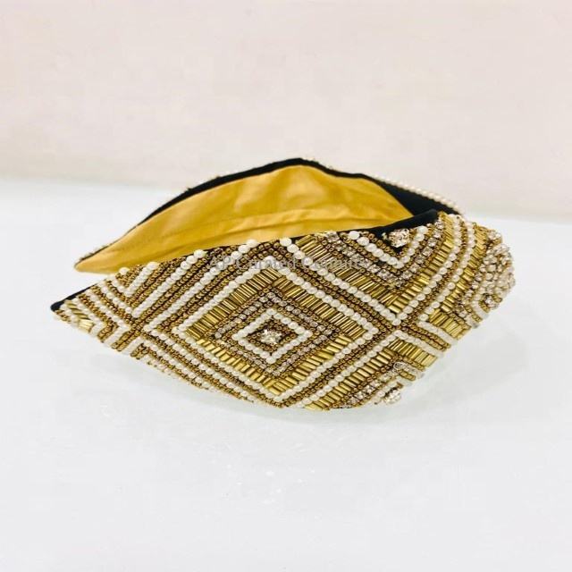 Indian Exporter's Trendy Design Pretty Hair Ornaments Hand Embellished Beaded Turban Geometrical Style Headbands