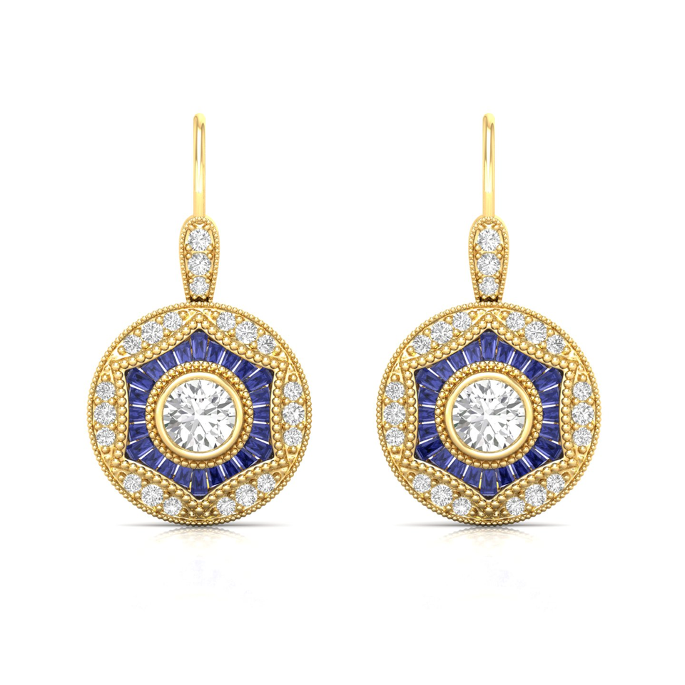 Indian Exporters Sale 14K Gold Plated Metal Earrings 3.53Ct Moissanite Baguette & Round Cut Diamond for Parties Weddings Gifts