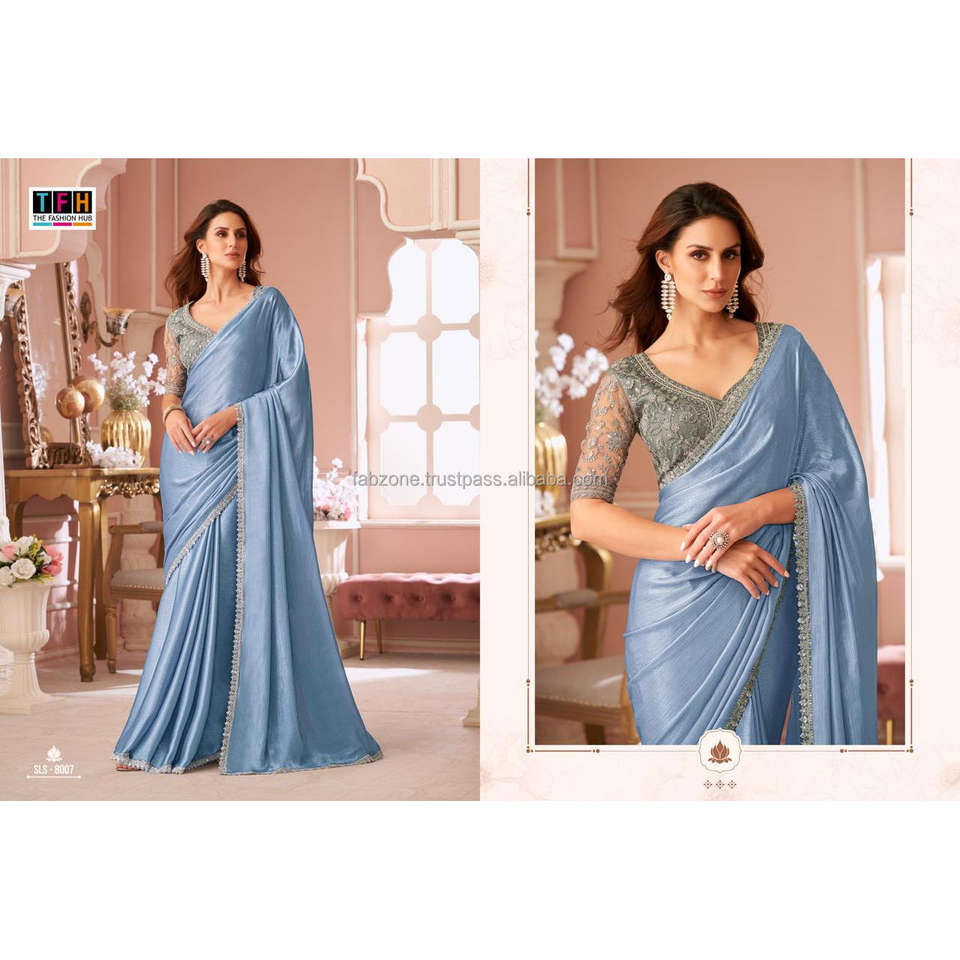 Indian Fancy with Dual Colour Sequence and Thread Embroidery Work Cut Border Saree with Satin Banglory Silk Blouse