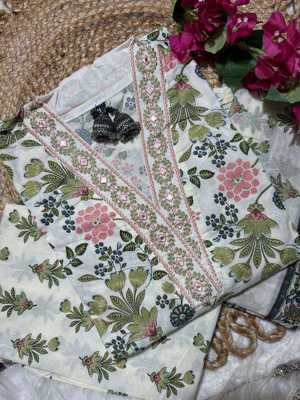 Product Name:Cotton Floral Print Top With V-Neck Pant And Dupatta