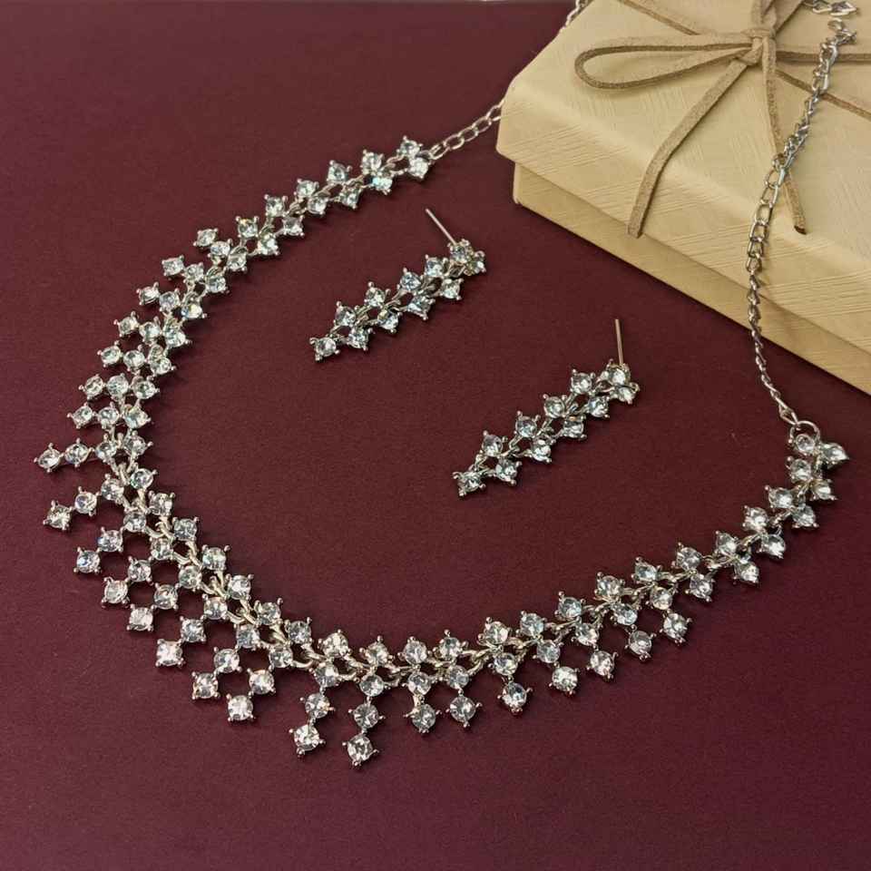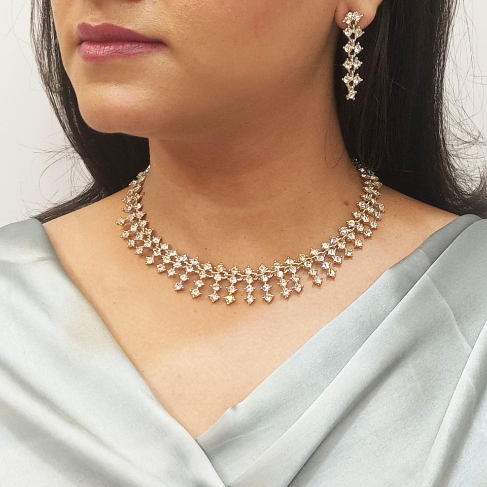 Indian Fashion Jewellery for Women Gold Plated CZ Crystal Cubic Zirconia Rhinestone Necklace Set with Dangle Earrings Weddings