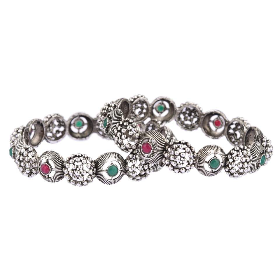 Indian Fashion Jewelry Wholesaler Crystal Oxidized Silver Tone Wedding Bracelet Bangles Indian Manufacturer Jewellery For Women