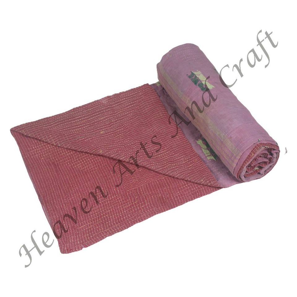 Indian Festival Best Design Reversible Kantha Quilt for Home and Hotel Indian Reversible Hand Stitched Heavy Throw Old Sari