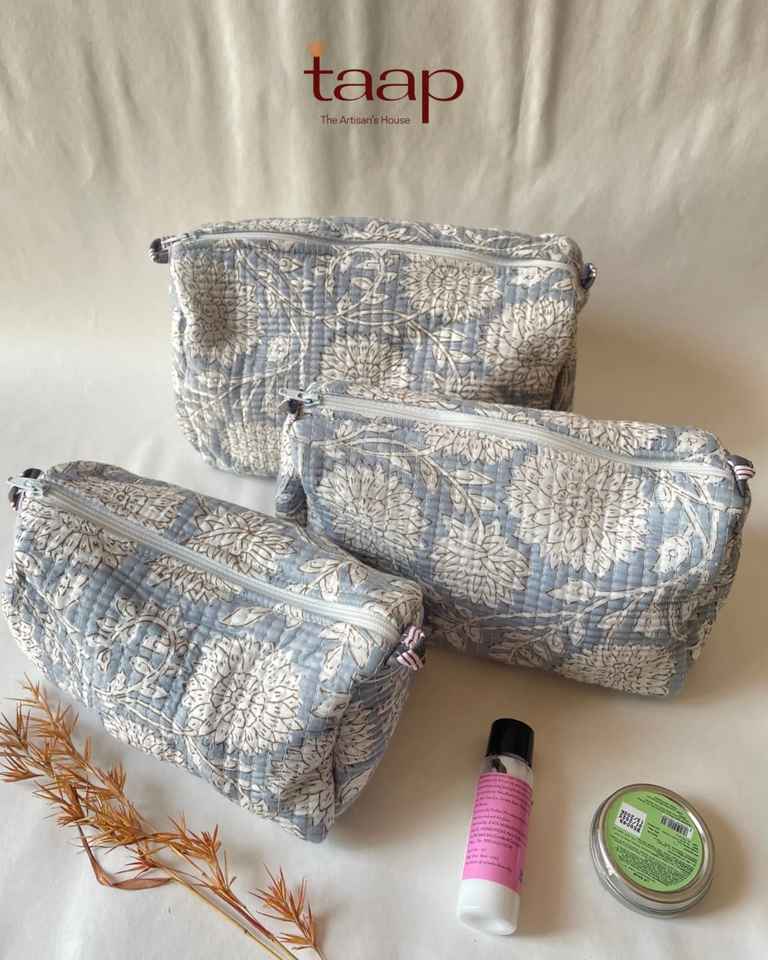 Indian Floral Block Printed Handmade Quilted Cotton Zipper Fashion Makeup Bag Set Professional Waterproof Girl Wash Pouch