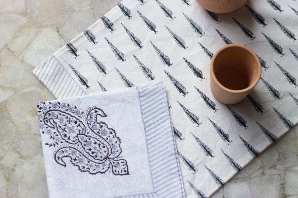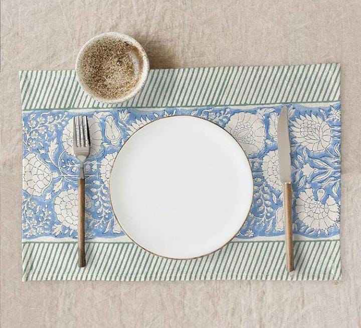 Indian Floral Hand Block Print Indian Cotton Jaipuri Floral Table Mats & Napkin Set of 6 Napkins & 6 Mats