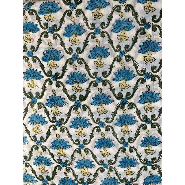 Products Name:Indian Hand Block Printed Turquoise Blue fabric