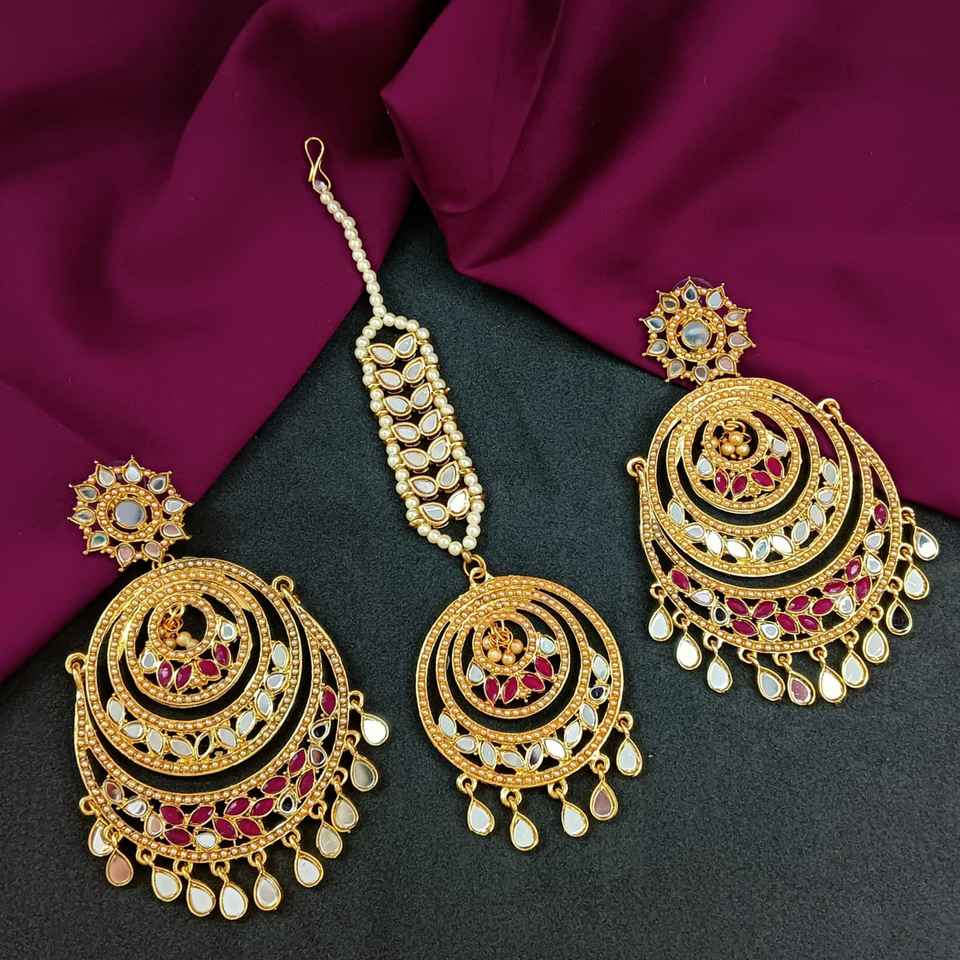 Feature:Embellished with glass stones, faux pearl dangle maang tikka earrings,