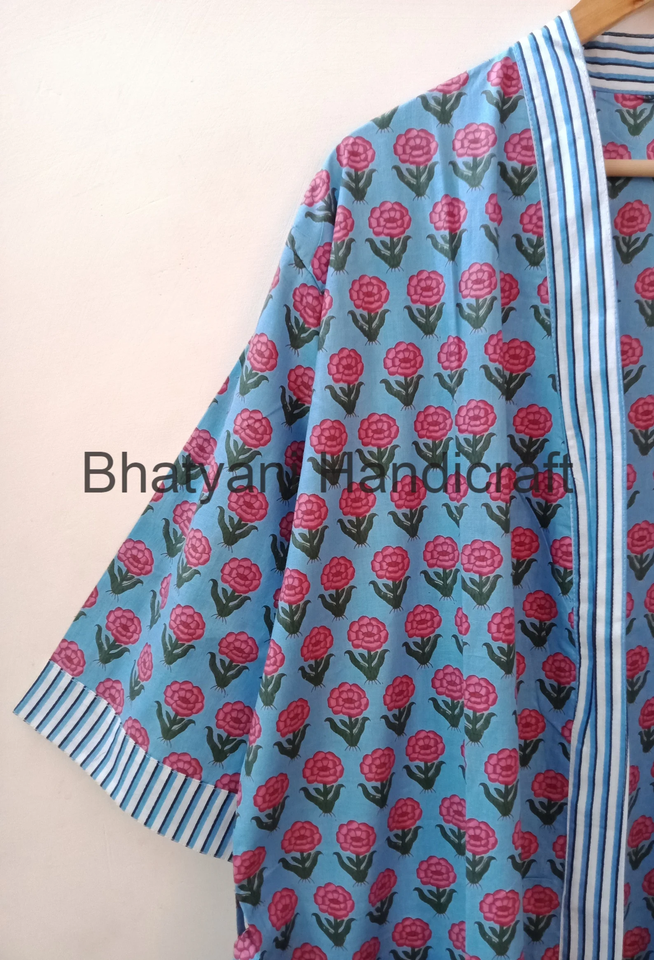 Indian Floral Kimono Cotton Bath Robe Long Dressing Gown Beach Wear Dress Bridal Kimono Gift for Her Bridesmaid Gift