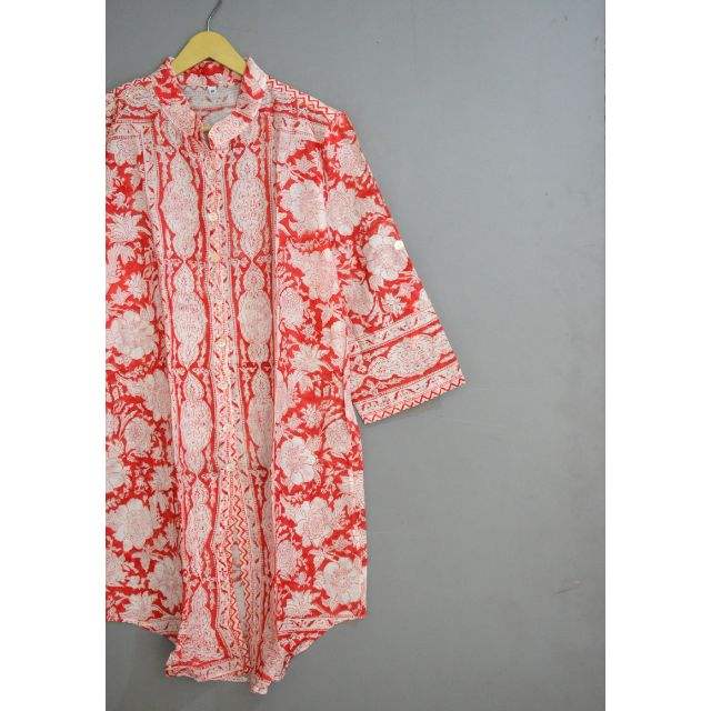 Indian Floral Printed Beachwear Hand Block Shirt Tunic Casual Dresses for Women